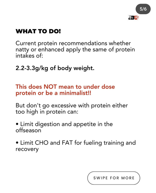 Entre 5:00 et 10:00: « If you’re on gear, you need A. Lot. More.” (2.2-3.3g/kg)