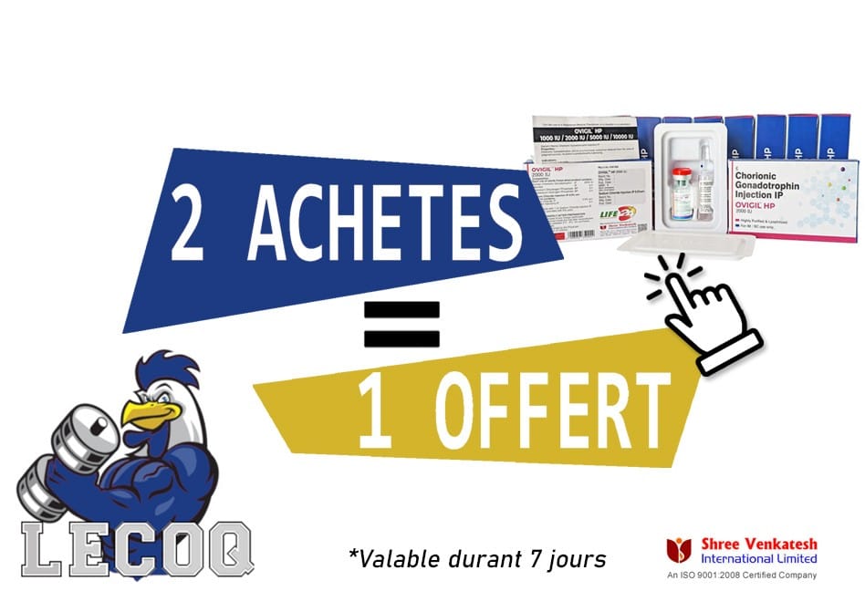*Le produit gratuit s’ajoute automatiquement au panier. https://www.lecoq.to/boutique/ovigil-2000iu-hcg-shree-venkatesh/