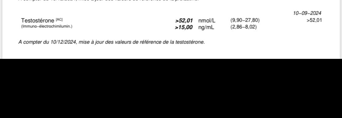Comme promis le résultat de la prise de sang pour le test, comme lors de mon précédent test les valeurs labo sont au maximum !
