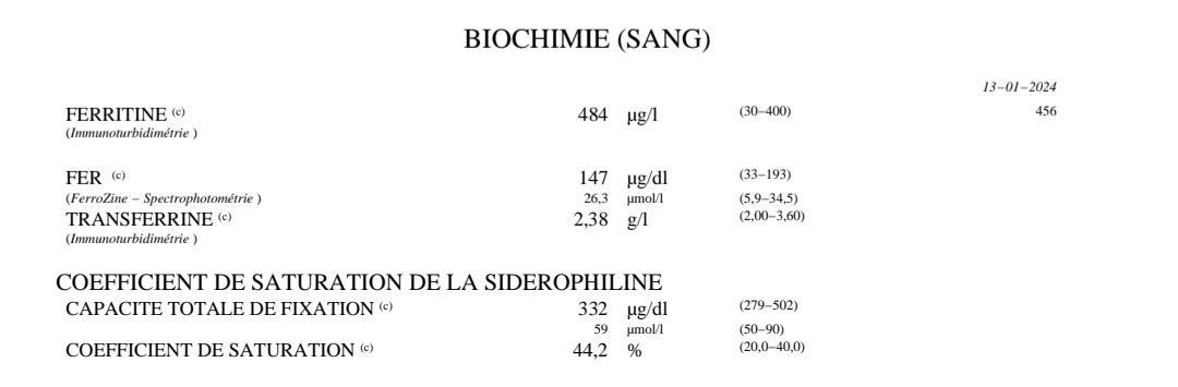 J'en avais déjà parlé, mes taux de ferritine sont plus haut que la norme mais pas suffisamment pour que le médecin mette en place des saignées.